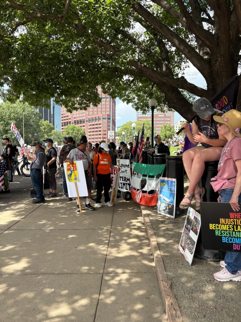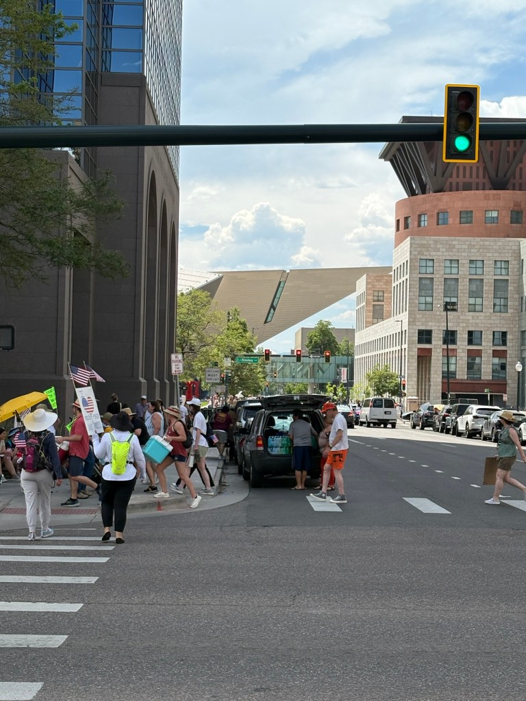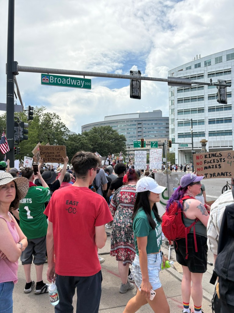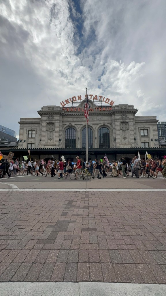 I embarked on my journey that afternoon on public transportation knowing it would be nearly impossible to drive or Uber to the heart of the city without being gridlocked in traffic. I had no idea, until checking twitter that all busses and trains to downtown had been stopped due to the protest. I was prepared to be told “this was the last stop”, and the more I looked around, noticed the number of protesters walking outside and joining me on the RTD adventure to the capitol. This clue signaled me that I was on the right track.
